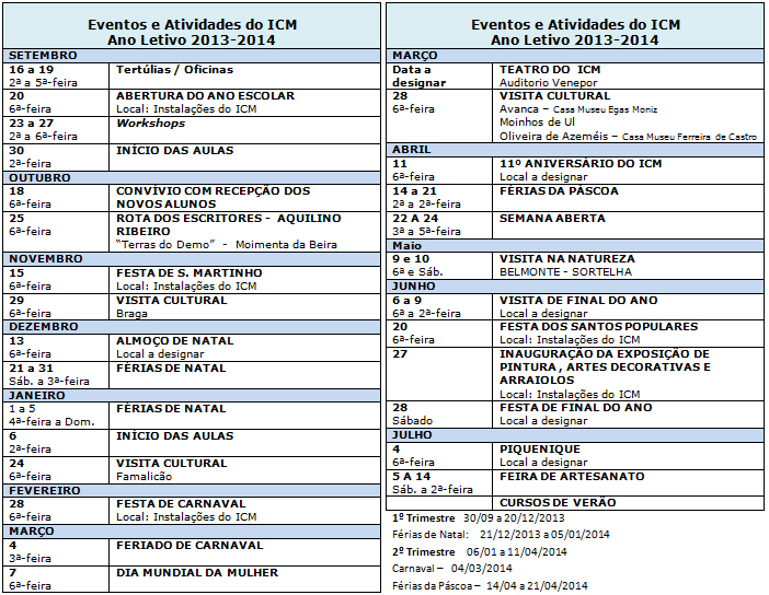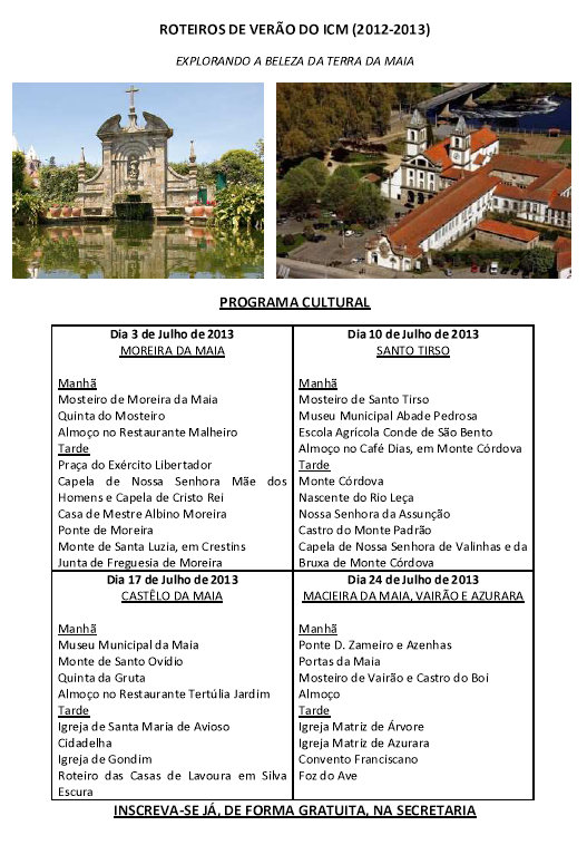 Roteiros de Verão no ICM: 3 / 10 / 17 e 24 de Julho de 2013